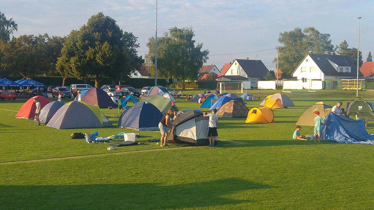 Viele Helfer trugen zum Gelingen des diesjährigen Zeltlagers mit Kino-Open-Air bei. Bei traumhaften Wetter fanden sich ca. 115 Kinder und viele Erwachsene auf dem SVE-Sportgelände ein. Dabei hatten die Kinder und Jugendlichen wieder sehr viel Spaß und Freunde. Bei Steaks, Würstchen und kühlen Getränken genossen sie den Filme-Abend und das Übernachten im Freien. Die Mondfinsternis sorgte für die unvergessliche Romantik dieses lauen Sommerabends.