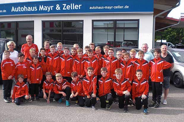 Grund zur Freude hatten die Nachwuchskicker der Spielgemeinschaft SV Eggelstetten/VfB Oberndorf. Das Autohaus Mayr & Zeller aus Oberndorf unterstütze die Neuanschaffung von Trainingsanzügen mit einer Spende von 500 Euro. Vorstandsvorsitzender des SV Eggelstetten Georg Kühling und Fußball-Vorstand Josef Schefstos bedankten sich bei Geschäftsführer Herrn Zeller für die großzügige Unterstützung.